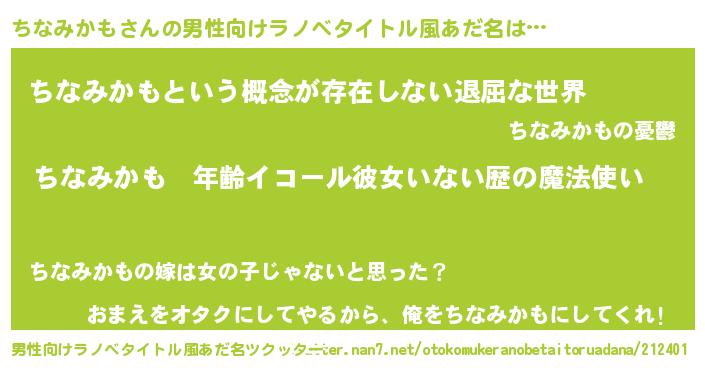 | 女子向けラノベタイトル風あだ名 | 『ちなみかもの玉の輿計画!』 |