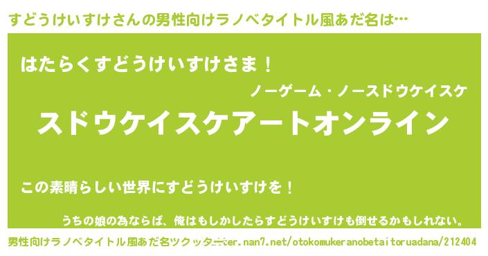 | 女子向けラノベタイトル風あだ名 | 『誰かこのすどうけいすけを説明してください! ~契約から始まるウェディング~』 |