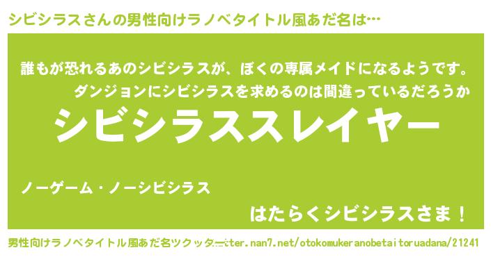 | 胡散臭い通販商品みたいなあだ名 | 『絶対に幸福をもたらす健康食品…その名も「シビシラス」』 |