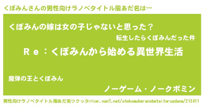 | 女子向けラノベタイトル風あだ名 | 『くぼみんストレイドッグス』 |
