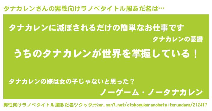 | 女子向けラノベタイトル風あだ名 | 『男装タナカレンの憂鬱な任務』 |