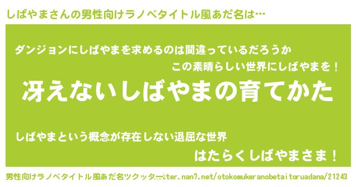 | 女子向けラノベタイトル風あだ名 | 『男装しばやまの憂鬱な任務』 |