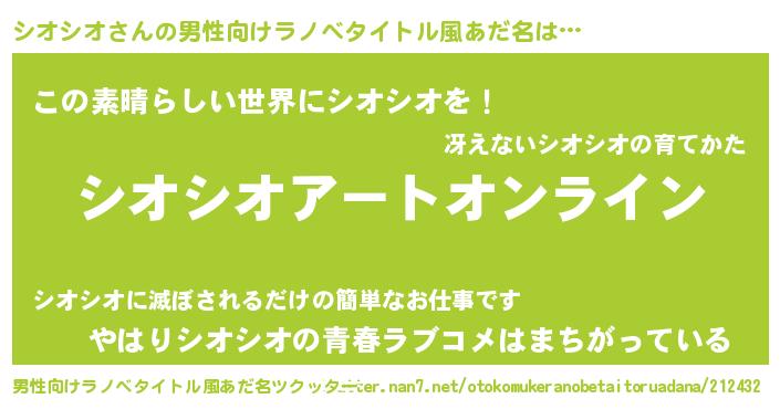 | ファンタジー風あだ名 | 『シオフェル』『ヴァルシオーナ』 |