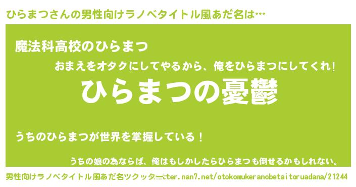 | 女子向けラノベタイトル風あだ名 | 『ひらまつ姫と円卓の騎士』 |