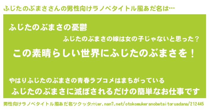 | 女子向けラノベタイトル風あだ名 | 『悪役ふじたのぶまさに転生したようですが、知った事ではありません』 |