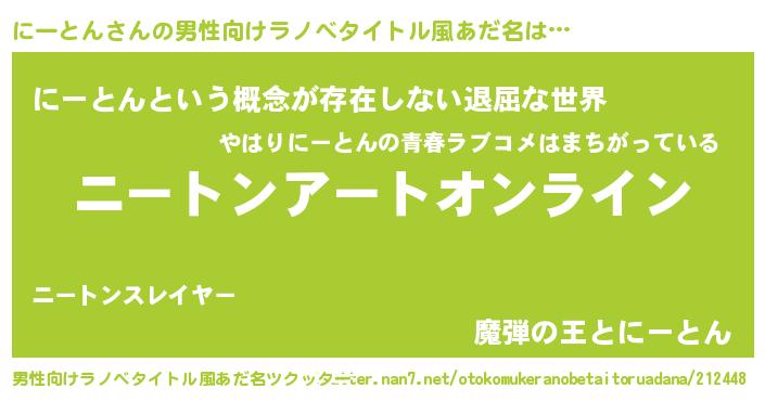 | 胡散臭い通販商品みたいなあだ名 | 『モテモテ間違いなし水晶球…その名も「にーとん」』 |