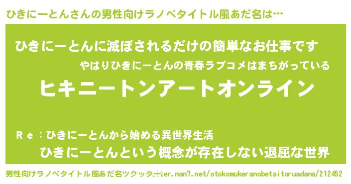 | 胡散臭い通販商品みたいなあだ名 | 『億万長者になれるブレスレット…その名も「ひきにーとん」』 |