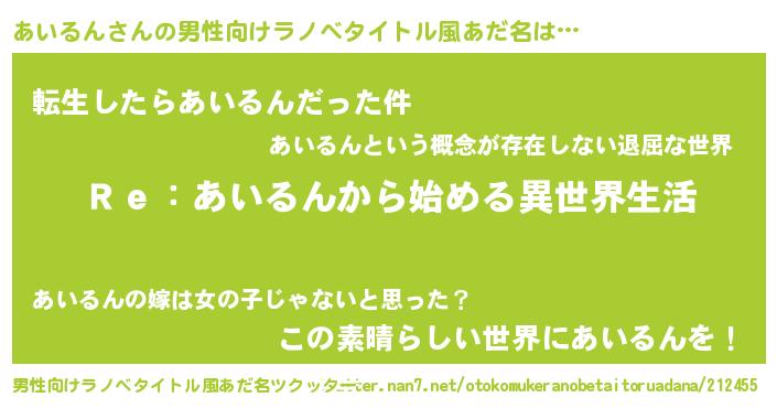 | 女子向けラノベタイトル風あだ名 | 『闇のあいるん』『あいるん様がみてる』 |