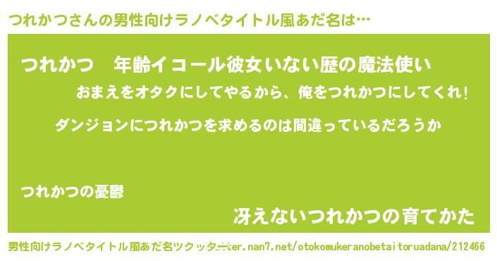 | 胡散臭い通販商品みたいなあだ名 | 『伝統あるサプリメント…その名も「つれかつ」』 |