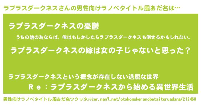 | 意味不明あだ名 | 『とにかく怪しいラプラスダークネス』 |