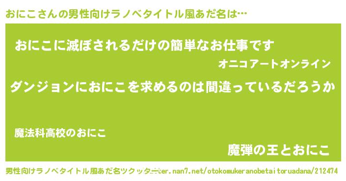 | 女子向けラノベタイトル風あだ名 | 『おにこの卵を拾いまして』 |