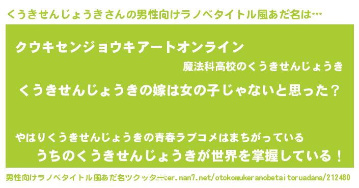 | 女子向けラノベタイトル風あだ名 | 『くうきせんじょうきの卵を拾いまして』 |