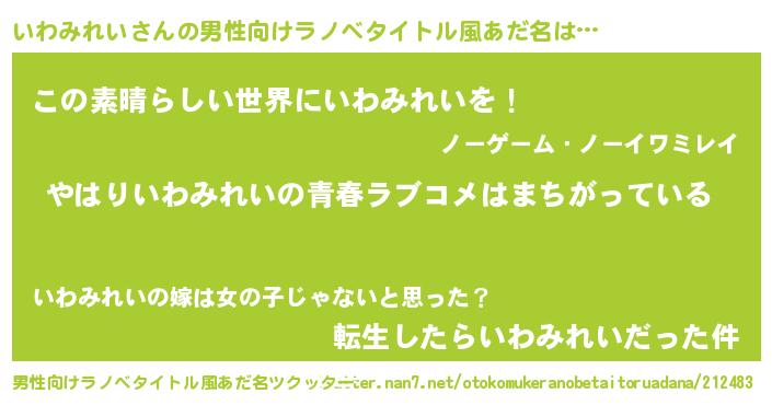 | 女子向けラノベタイトル風あだ名 | 『いわみれいの雑貨屋さん』 |