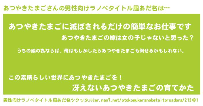| 女子向けラノベタイトル風あだ名 | 『あつやきたまごの婚約者』 |