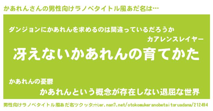 | 意味不明あだ名 | 『とにかく怪しいかあれん』 |