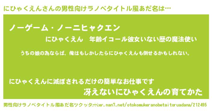 | ファンタジー風あだ名 | 『エターナルニヒャクエンー』 |