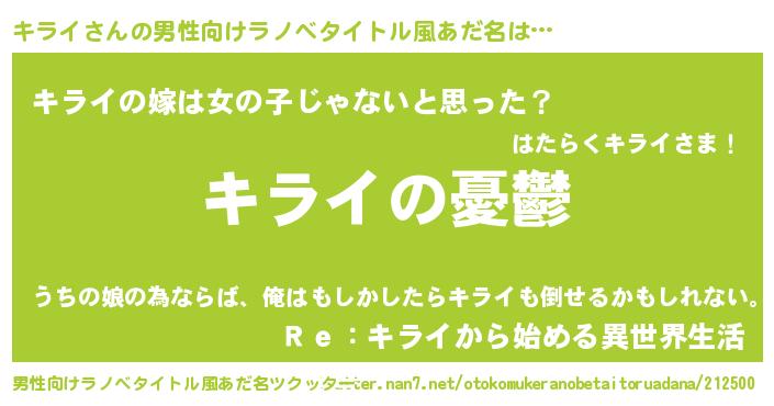 | 胡散臭い通販商品みたいなあだ名 | 『必ず成功するブレスレット…その名も「キライ」』 |