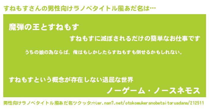 | 女子向けラノベタイトル風あだ名 | 『すねもす伯爵の花嫁』 |