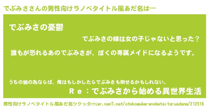 | 女子向けラノベタイトル風あだ名 | 『異世界でカフェでぶみさを開店しました。』 |
