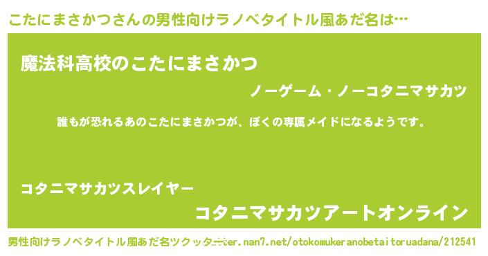 | 伝説のあだ名 | 『古文書に記された勇者こたにまさかつ』 |