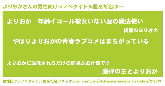 よりおかさんの男性向けラノベタイトル風あだ名をツクッター!