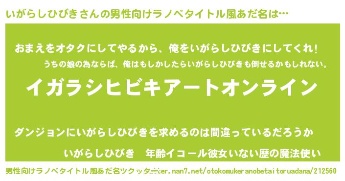 | 女子向けラノベタイトル風あだ名 | 『誰かこのいがらしひびきを説明してください! ~契約から始まるウェディング~』 |