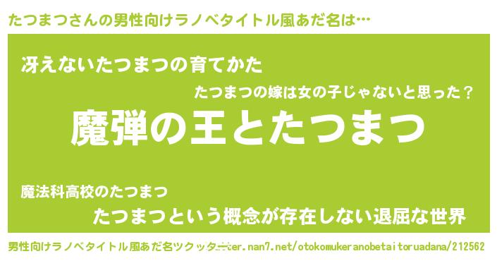| 女子向けラノベタイトル風あだ名 | 『乙女ゲームの破滅フラグしかない悪役たつまつに転生してしまった…』 |