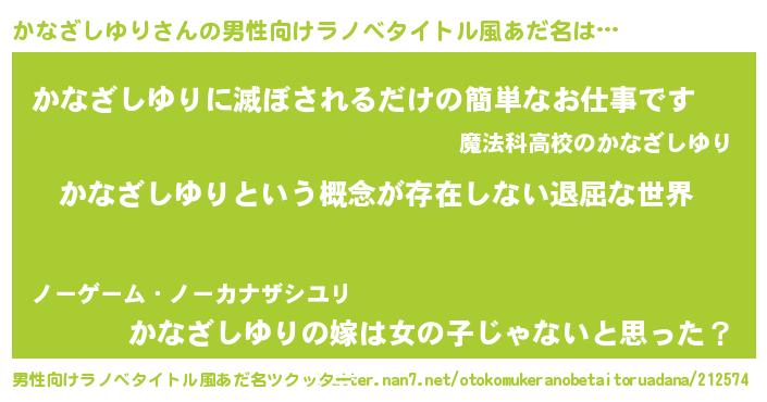 | ヘコむあだ名 | 『かなざしゆり(笑)』『かなお』 |