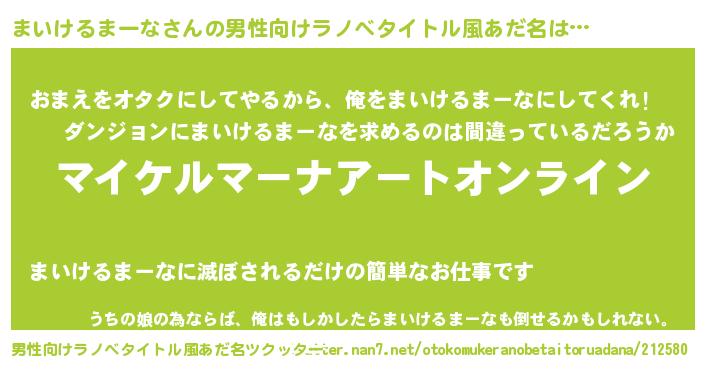 まいけるまーなさんの男性向けラノベタイトル風あだ名をツクッター!