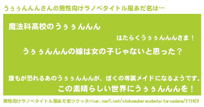 | 女子向けラノベタイトル風あだ名 | 『うぅぅんんん様がみてる』 |