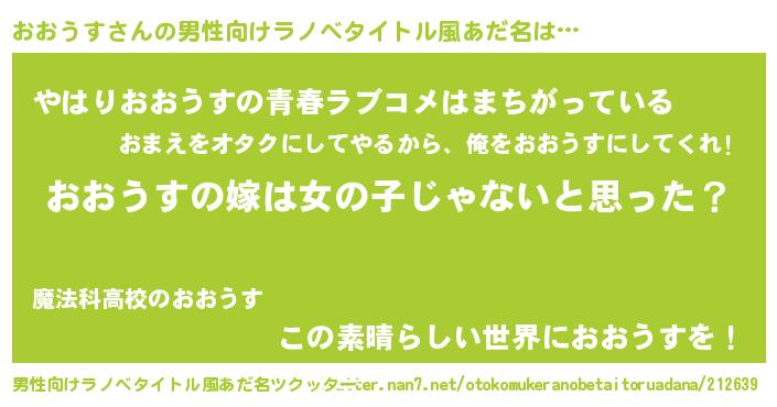 | 女子向けラノベタイトル風あだ名 | 『おおうす様がみてる』 |