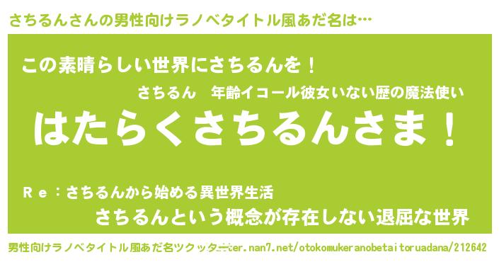 | 意味不明あだ名 | 『住所不定無職さちるん(77歳)』 |