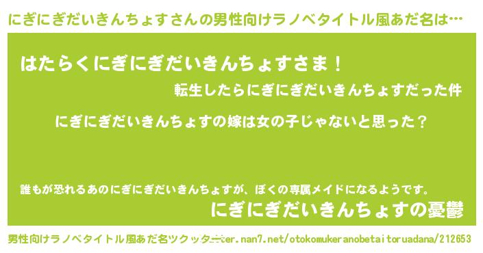 | 女子向けラノベタイトル風あだ名 | 『にぎにぎだいきんちょす様がみてる』 |