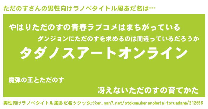 | 女子向けラノベタイトル風あだ名 | 『ただのす姫と円卓の騎士』 |