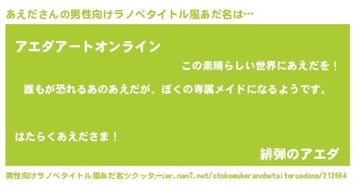 | ヒーロー風カッコイイあだ名 | 『ネオアエダ』『スーパーアエダ』 |