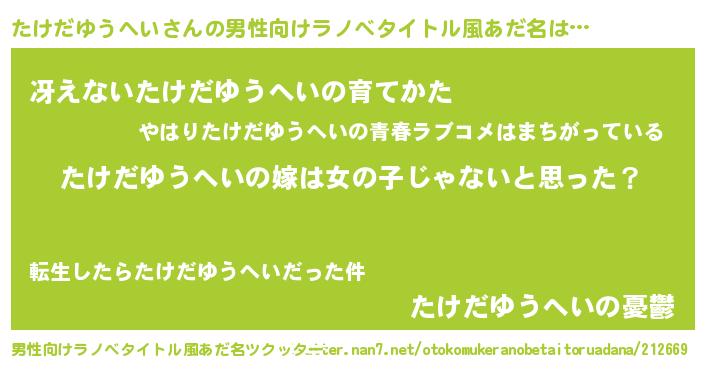 | 女子向けラノベタイトル風あだ名 | 『たけだゆうへい様がみてる』 |