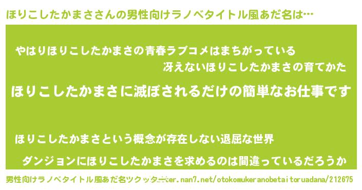 | 意味不明あだ名 | 『ほりこしたかまさフォーエバー』 |