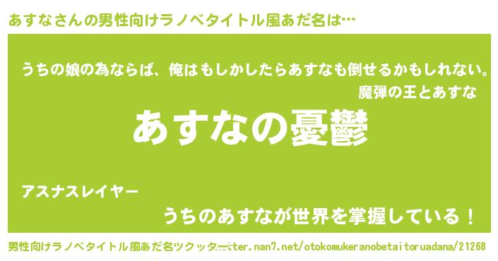 | 女子向けラノベタイトル風あだ名 | 『(仮)あすなのやんごとなき事情』 |