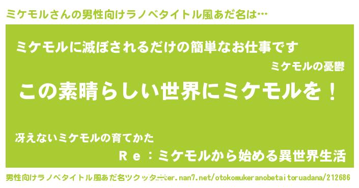 | 意味不明あだ名 | 『住所不定無職ミケモル(40歳)』 |