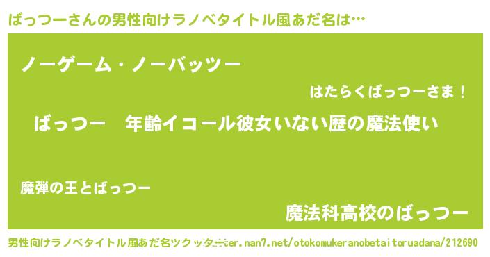| ヒーロー風カッコイイあだ名 | 『慈愛の使者ばっつー』『仮面バッダー』 |
