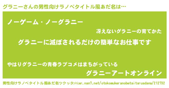 | 意味不明あだ名 | 『眠気覚ましガムグラニー味』 |