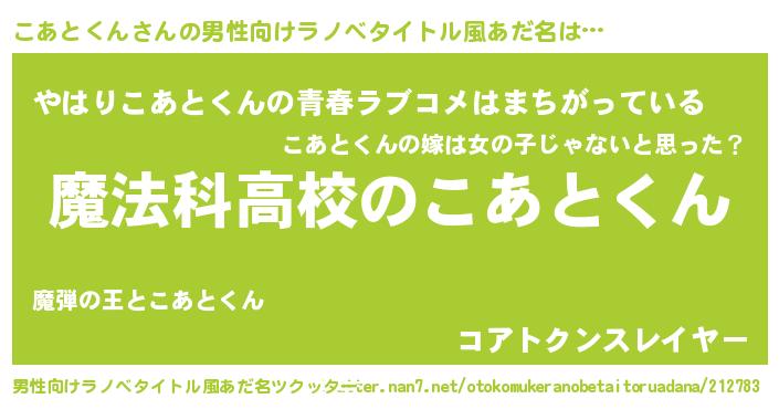| 女子向けラノベタイトル風あだ名 | 『こあとくんなんてお断りですっ。』 |