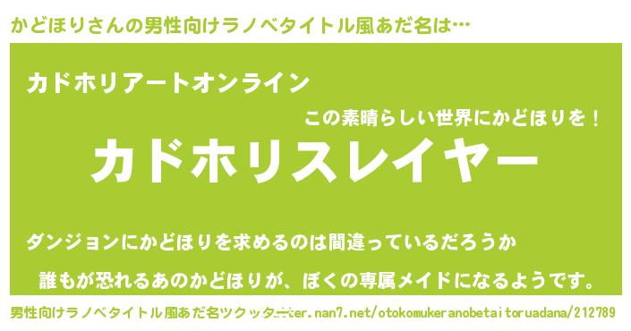 | 胡散臭い通販商品みたいなあだ名 | 『必ず成功する霊験あらたかなお札…その名も「かどほり」』 |