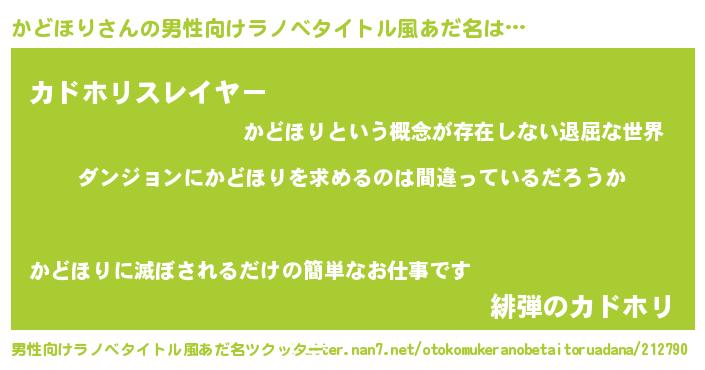 | 胡散臭い通販商品みたいなあだ名 | 『信頼と実績のネックレス…その名も「かどほり」』 |