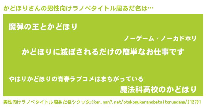 | ヒーロー風カッコイイあだ名 | 『仮面カドダー』『超時空戦士カドホリ』 |