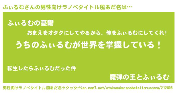 | 胡散臭い通販商品みたいなあだ名 | 『億万長者になれるブレスレット…その名も「ふぃるむ」』 |