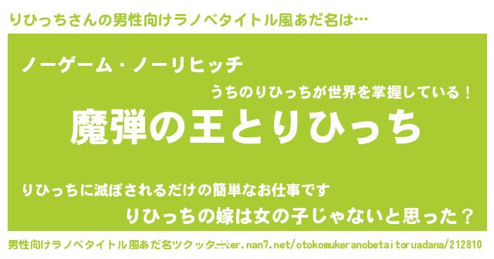 | 女子向けラノベタイトル風あだ名 | 『りひっちが死なない童話 林檎のりひっちの診療簿』 |