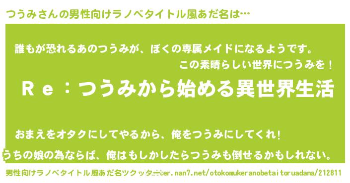 | 意味不明あだ名 | 『自称つうみ』『永久保存つうみ』 |