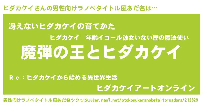 | 女子向けラノベタイトル風あだ名 | 『ヒダカケイが死なない童話 林檎のヒダカケイの診療簿』 |