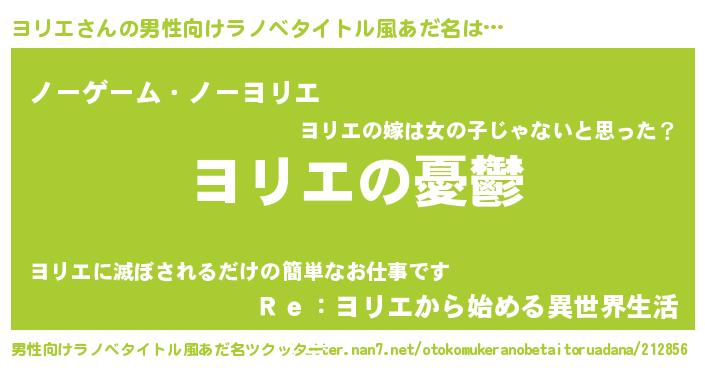 | 女子向けラノベタイトル風あだ名 | 『(仮)ヨリエのやんごとなき事情』 |